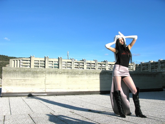 Visualnya itu beneran nggak ketolong deh cantiknya. An Yu-jin mendominasi setiap frame, memancarkan aura yang luar biasa dengan latar belakang pemandangan kota eksotis dan bangunan beton yang gagah. Outfitnya, terutama, cerdas banget, paduin atasan hitam chic sama sarung tangan putih panjang yang bikin pesona sofisitikatednya makin maksimal.