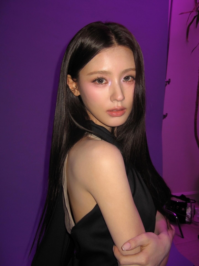 Pada 10 Februari lalu, Miyeon posting beberapa foto kece tanpa caption sama sekali, biar visualnya aja yang ngomong. Berpose dengan latar belakang ungu dreamy, dia pakai dress halterneck hitam yang elegan, sambil megang buket bunga cerah yang kayaknya malu-malu dibandingin sama cantiknya dia.