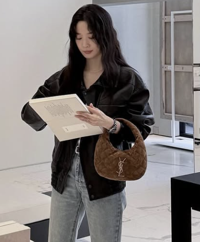 Pilihan tas suede ICARINO mini ini bener-bener nunjukin gaya khas Lee Chung-ah: simpel tapi berdampak. Bukti kalo dia bisa naikin level outfit cuma pake satu aksesoris pilihan yang pas, nunjukin style sejati itu bukan soal berisik, tapi soal percaya diri milih apa yang pas.