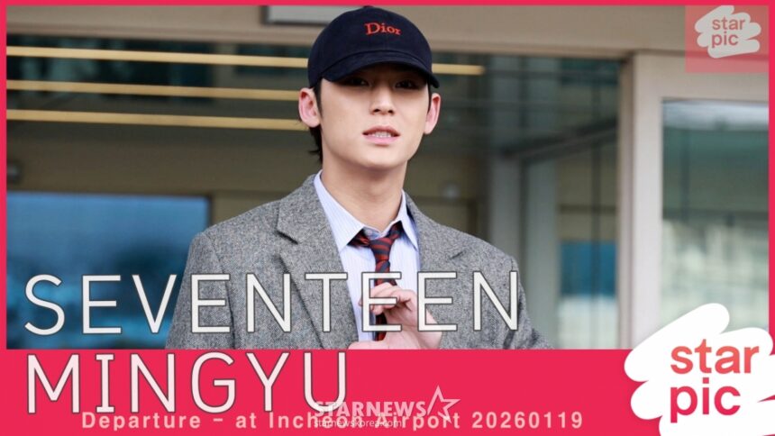 OMG! Mingyu **SEVENTEEN** emang nggak ada obat! Pagi ini, **19 Januari 2026**, doi ketangkep kamera di **Bandara Internasional Incheon**, mau terbang ke **Paris Fashion Week**! Parah, stylenya keren **banget**!