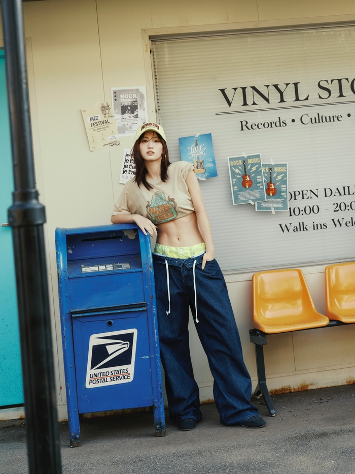 Foto-fotonya nampilin Momo dengan latar belakang vintage yang charming – toko LP jadul dan kotak pos klasik, bikin suasana jadi timeless dan wistful. Tapi, gaya modernnya beneran bikin dia bersinar.