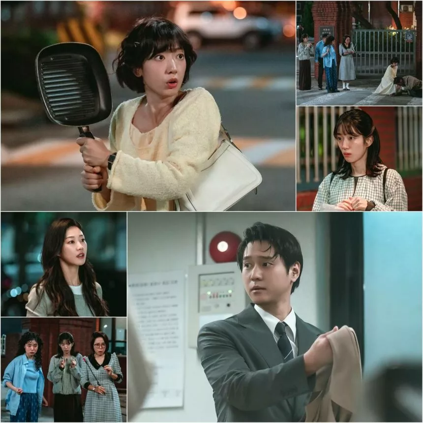 Potret terbaru nunjukkin momen yang gak bakal dilupain: Hong Geum-bo (Park Shin-hye) lagi megang panci sambil diem, sementara Shin Jeong-woo (Go Kyung-pyo) kegeletakan di lantai. Kejadian dramatis ini ditonton langsung sama penghuni kamar 301, Kang No-ra (Choi Ji-soo) and Kim Mi-sook (Kang Chae-young), yang langsung lari keluar liat kekacauan. Makin rame lagi, satpam sama penjaga asrama juga pada bingung, cuma Go Bok-hee (Ha Yoon-kyung) yang kayaknya ngerti banget situasinya. Keributan di depan gerbang asrama ini langsung bikin penasaran sama cerita lengkap di balik adegan meledak ini.